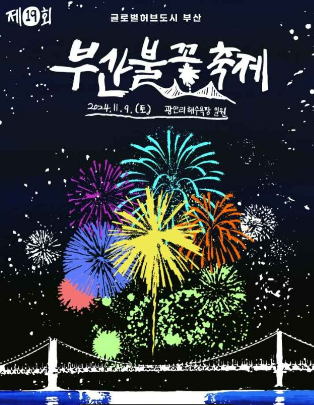 - 소개: 부산의 밤하늘을 화려하게 수놓는 불꽃축제로, 매년 수많은 관람객이 찾는 대표적인 행사입니다. 다양한 테마의 불꽃쇼와 함께 해상 퍼레이드 등 다채로운 프로그램이 진행됩니다.